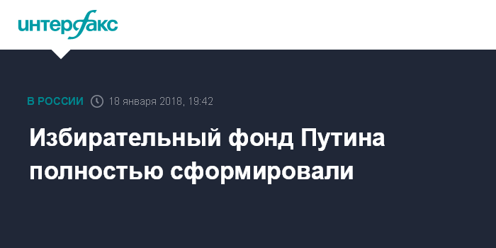 Москва. 18 января. INTERFAX.RU - Избирательный фонд кандидата в президенты РФ Владимира Путина сформирован, сообщили в его штабе.