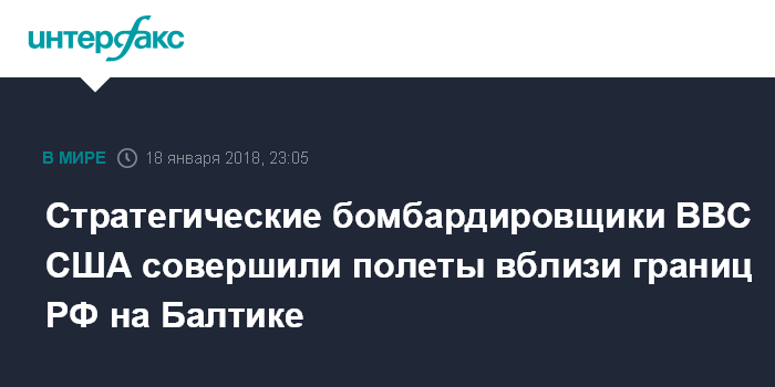 Москва. 18 января. INTERFAX.RU - Два стратегических бомбардировщика ВВС США B-52H, способные нести ядерное оружие, в четверг в рамках учений в воздушном пространстве стран Балтии осуществили тренировочные полеты вблизи российских рубежей в регионе Балтийского моря, следует из мониторинговых данных западных авиационных ресурсов.