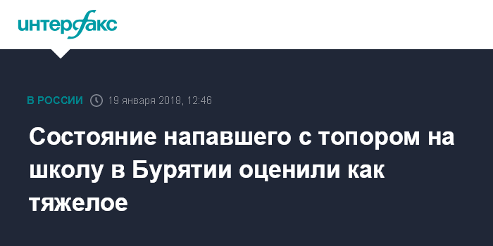 Москва. 19 января. INTERFAX.RU - Состояние подростка, совершившего нападение на школу в Бурятии, остается тяжелым, сообщил "Интерфаксу" осведомленный источник.