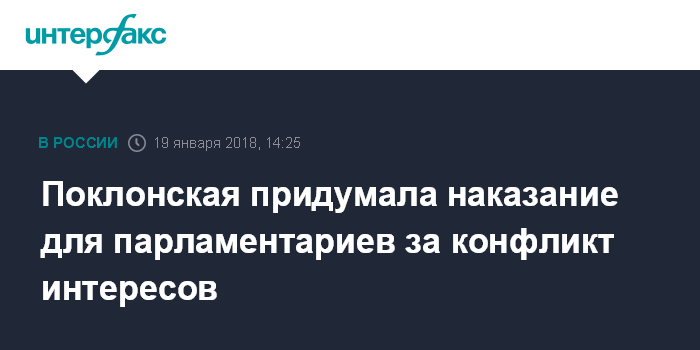 "Эта градация зависит от последствий. Если от конфликта интересов наступили негативные последствия, то (следует) выносить на пленарное заседание (Госдумы или Совета Федерации) вопрос о прекращении полномочий, если общественные последствия не наступили, то публиковать (информацию об этом), и это в свою очередь отражается на имидже и авторитете самого депутата", - пояснила Поклонская.