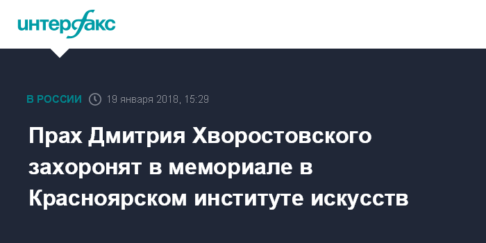 Москва. 19 января. INTERFAX.RU - Капсула с прахом всемирно известного оперного певца Дмитрия Хворостовского будет захоронена в специальном мемориале, который планируется построить на территории Красноярского института искусств, сообщил журналистам и.о. первого заместителя губернатора Красноярского края Сергей Пономаренко в пятницу.