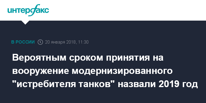 Вероятным сроком принятия на вооружение модернизированного "истребителя танков" назвали 2019 год