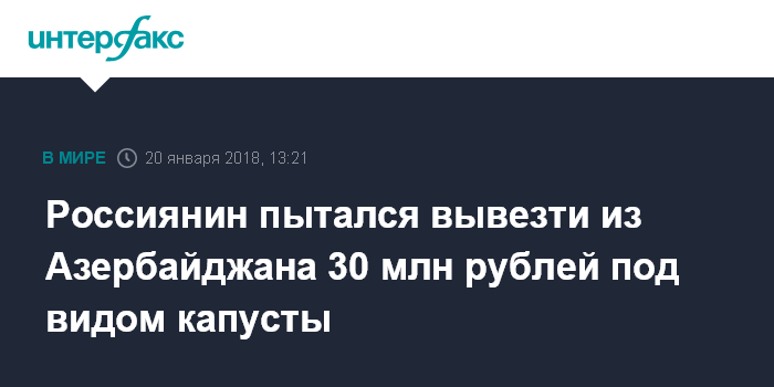 Россиянин пытался вывезти из Азербайджана 30 млн рублей под видом капусты
