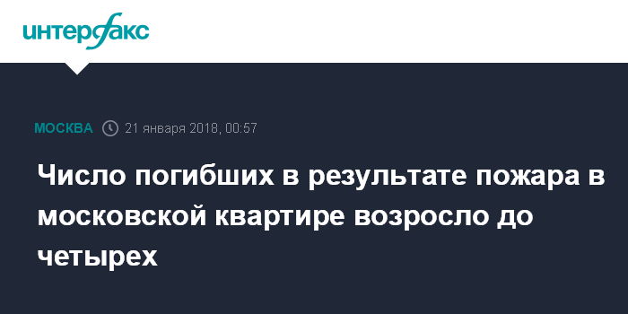 Число погибших в результате пожара в московской квартире возросло до четырех