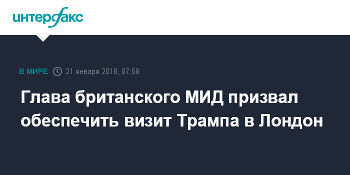 Москва. 21 января. INTERFAX.RU - Министр иностранных дел Великобритании Борис Джонсон заявил, что необходимо обеспечить организацию визита президента США Дональда Трампа в Лондон.