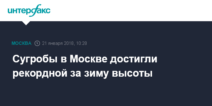 В метеобюро Москвы "Интерфаксу" заявили, что размер сугробов в городе к 21 января достиг рекордных за нынешнюю зиму значений.