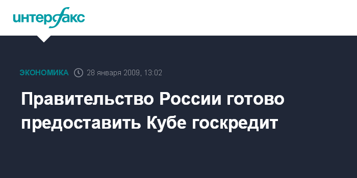 Вопрос о предоставлении Кубе госкредита в размере $20 млн обсуждался на президиуме правительства РФ на прошлой неделе. Премьер-министр РФ Владимир Путин тогда заявил, что эти деньги пойдут на пользу российской экономике, так как "предполагается на эти средства закупать для Кубы товары российского производства".