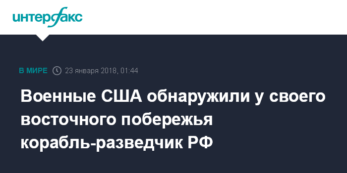 Москва. 23 января. INTERFAX.RU - Российский корабль-разведчик "Виктор Леонов" был замечен американскими военными в нейтральных водах в 100 милях (185 км) от побережья Северной Каролины, сообщает в понедельник телеканал CNN.