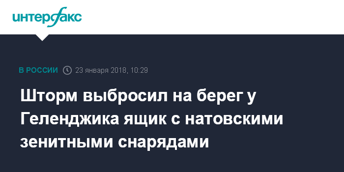 Москва. 23 января. INTERFAX.RU - Ящик с зенитными снарядами, принятыми на вооружение в странах НАТО, найден на берегу моря в районе Геленджика, предположительно его выбросило штормом, сообщили во вторник агентству "Интерфакс" в пресс-службе погрануправления ФСБ России по Краснодарскому краю.