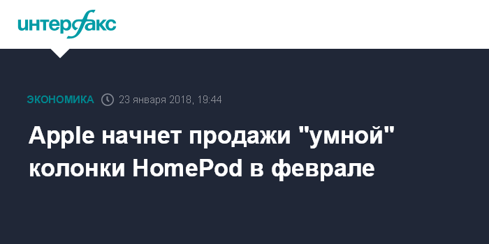 Москва. 23 января. INTERFAX.RU - Продажи "умной" колонки HomePod от Apple, которые должны были стартовать в декабре 2017 года, начнутся 9 февраля, сообщили в компании.