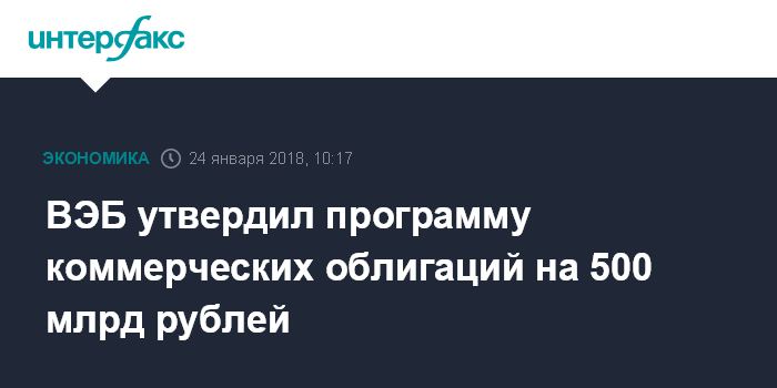 ВЭБ утвердил программу коммерческих облигаций на 500 млрд рублей