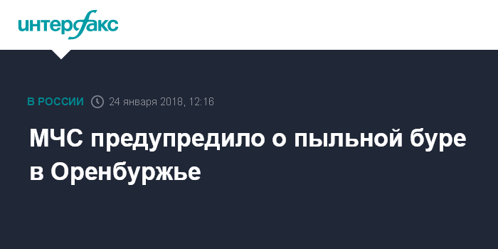 Москва. 24 января. INTERFAX.RU - В МЧС предупредили жителей Оренбургской области о пыльной буре на территории региона в среду.