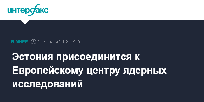 Москва. 24 января. INTERFAX.RU - Эстония намерена стать полноправным членом Европейского Центра ядерных исследований (CERN).
