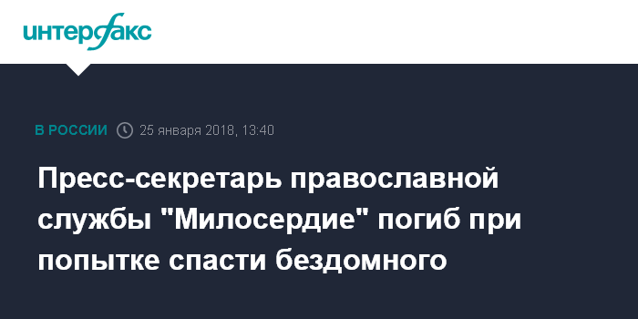Пресс-секретарь православной службы "Милосердие" погиб при попытке спасти бездомного