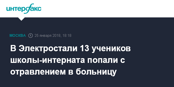 Москва. 25 января. INTERFAX.RU - В Электростали из школы-интерната для детей с ограниченными возможностями здоровья госпитализировали 13 воспитанников, сообщила "Интерфаксу" уполномоченный по правам ребенка в Московской области Ксения Мишонова.