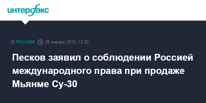 Песков заявил о соблюдении Россией международного права при продаже Мьянме Су-30
