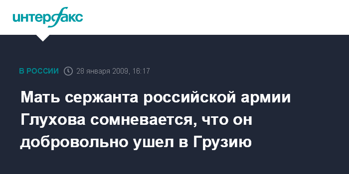 Мать сержанта российской армии Глухова сомневается, что он добровольно ушел в Грузию
