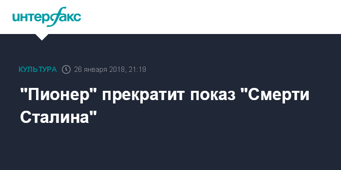 "Дорогие друзья, по независящим от нас причинам, с 27 января кинотеатр Пионер вынужден прекратить показы фильма "Смерть Сталина". Деньги за билеты будут всем возвращены", - говорится в сообщении "Пионера" в фейсбуке.