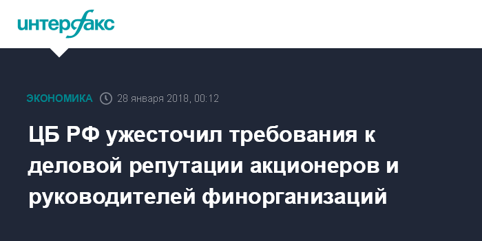 ЦБ РФ ужесточил требования к деловой репутации акционеров и руководителей финорганизаций