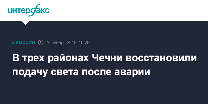 Ранее в воскресенье порядка 223 тыс. жителей Ножай-Юртовского, Курчалоевского и Гудермесского районов Чечни остались без света в результате отключения трансформатора на подстанции "Ойсунгур".
