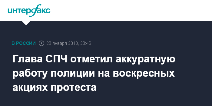 Москва. 28 января. INTERFAX.RU - Действия полиции в ходе акций протеста, прошедших в России в воскресенье, были корректными и соответствуют рекомендациям Совета Европы и Совета по правам человека, заявил глава СПЧ Михаил Федотов.