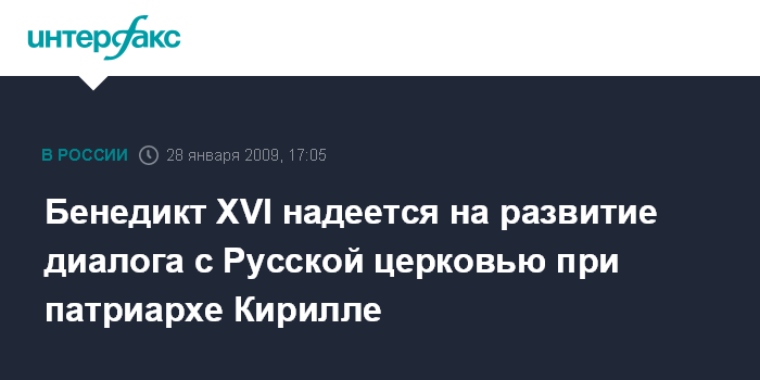Бенедикт XVI надеется на развитие диалога с Русской церковью при патриархе Кирилле