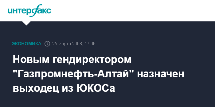 Новым гендиректором "Газпромнефть-Алтай" назначен выходец из ЮКОСа