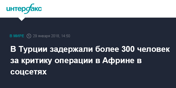 В Турции задержали более 300 человек за критику операции в Африне в соцсетях