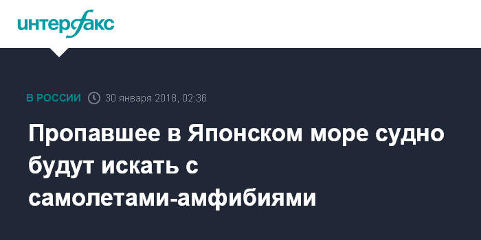 Москва. 30 января. INTERFAX.RU - Два самолета Бе-200 МЧС во вторник продолжат поиски пропавшего 26 января в Японском море сейнера "Восток".