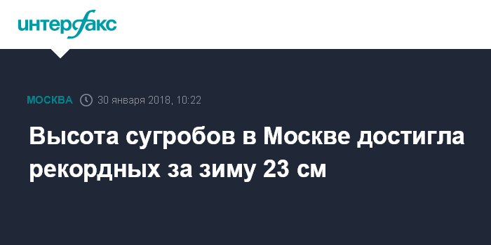Москва. 30 января. INTERFAX.RU - Высота снежного покрова на базовой столичной метеостанции на ВДНХ к 9:00 вторника выросла до 23 см, сообщили "Интерфаксу" в Гидрометцентре России. Таким образом, высота сугробов в столице достигла максимума за текущий зимний сезон.