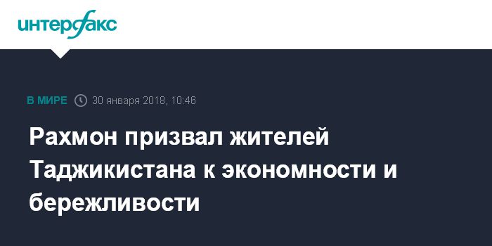 "Исходя из возможных трудностей, которые могут возникнуть, еще раз хочу призвать жителей страны к соблюдению всех требований закона республики Таджикистан "Об упорядочении традиций, торжеств и обрядов". Принимая во внимание то, что численность населения неуклонно увеличивается, потребность в продуктах питания растет, а также с учетом цен на мировых рынках, необходимо, чтобы экономность и бережливость превратились в характерную черту каждого человека и каждой семьи", - отметил Рахмон.