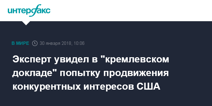 Эксперт увидел в "кремлевском докладе" попытку продвижения конкурентных интересов США