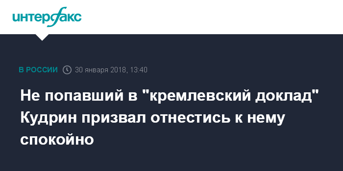Не попавший в "кремлевский доклад" Кудрин призвал отнестись к нему спокойно