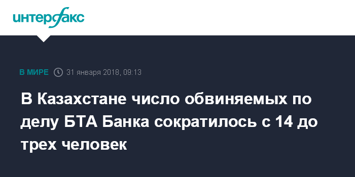 В Казахстане число обвиняемых по делу БТА Банка сократилось с 14 до трех человек