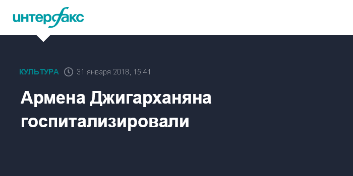 Москва. 31 января. INTERFAX.RU - Народный артист СССР Армен Джигарханян госпитализирован с осложнением вирусного заболевания, серьезной угрозы жизни и здоровью нет, заявил "Интерфаксу" официальный представитель "Театра Джигарханяна" Вячеслав Дьяченко.