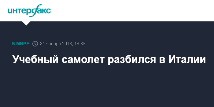 Москва. 31 января. INTERFAX.RU - В итальянской провинции Верона разбился легкомоторный самолет "Сессна", погибли два человека, сообщает в среду итальянское агентство ANSA.
