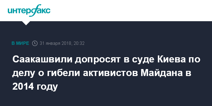 Москва. 31 января. INTERFAX.RU - Святошинский районный суд Киева 13 февраля допросит экс-президента Грузии, лидера "Руха новых сил" Михаила Саакашвили в рамках расследования дела об убийствах активистов Майдана в феврале 2014 года, по которому проходят пять бывших сотрудников спецподразделения МВД "Беркут".