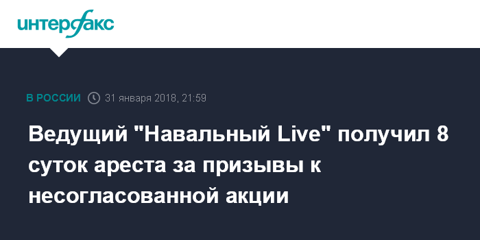 Ведущий "Навальный Live" получил 8 суток ареста за призывы к несогласованной акции