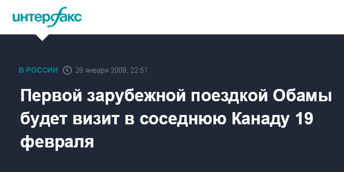 Вашингтон. 28 января. ИНТЕРФАКС - Президент США Барак Обама 19 февраля прибудет с официальным визитом в Канаду, сообщил в среду его представитель Роберт Гиббс.