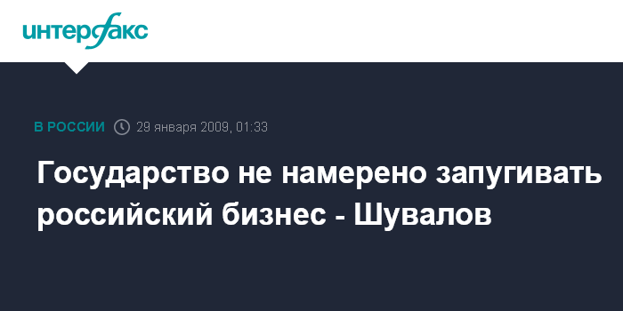 Отвечая на вопросы журналистов относительно нескольких последних громких уголовных дел в отношении российских бизнесменов, И.Шувалов сказал: "Никаких сигналов против российского бизнеса нет и не будет".