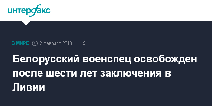 Москва. 2 февраля. INTERFAX.RU - Белорусский военный специалист освобожден в Ливии благодаря усилиям МИД России, МИД Белоруссии и российской Контактной группы по Ливии во главе с Львом Деньговым.