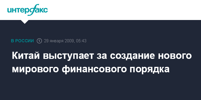 Китай выступает за создание нового мирового финансового порядка