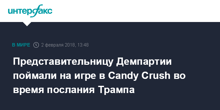 Москва. 2 февраля. INTERFAX.RU - Член палаты представителей от Демократической партии Бренда Лоуренс во время послания президента Дональда Трампа к конгрессу США играла в игру Candy Crush на своем смартфоне, передает телеканал Fox News.