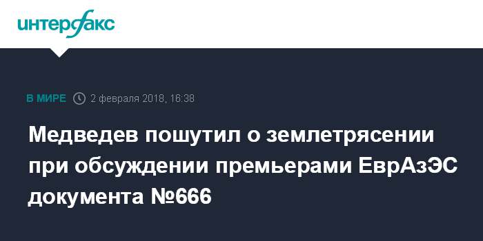 Медведев пошутил о землетрясении при обсуждении премьерами ЕврАзЭС документа №666