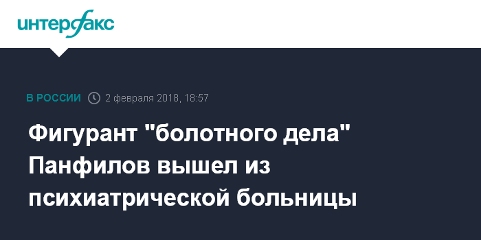 Сообщалось также, что Замоскворецкий суд Москвы 29 марта освободил Панфилова от уголовной ответственности по делу об участии в массовых беспорядках, постановив применить к нему принудительные меры медицинского характера в специализированном медучреждении закрытого типа.