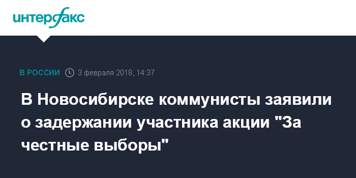 Москва. 3 февраля. INTERFAX.RU - Член новосибирского Центрального райкома КПРФ задержан в субботу за распространение листовки в поддержку кандидата в президенты РФ Павла Грудинина, сообщает пресс-служба областного комитета КПРФ.