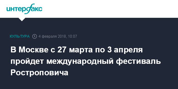Москва. 4 февраля. INTERFAX.RU - С 27 марта по 3 апреля в Москве 9-й раз пройдет международный фестиваль Мстислава Ростроповича. За пять фестивальных дней в Большом зале консерватории выступят крупнейшие музыкальные коллективы Европы и России, восходящие звезды и мэтры классической музыки.