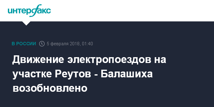 Москва. 5 февраля. INTERFAX.RU - Движение электропоездов на участке Реутов - Балашиха, приостановленное из-за падения дерева на пути, возобновлено, сообщается на сайте МЖД.