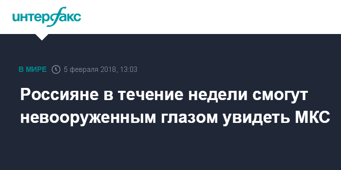 Россияне в течение недели смогут невооруженным глазом увидеть МКС
