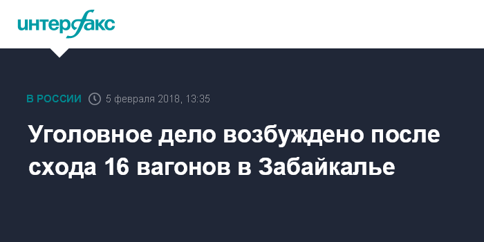 Уголовное дело возбуждено после схода 16 вагонов в Забайкалье